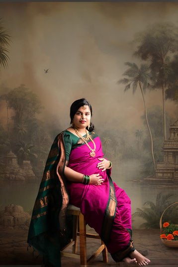 We offer a range of styled maternity sessions including Traditional Indian, Fine Art, Editorial, Glam, and AI-Enhanced Composites — each uniquely crafted to fit your story and style.